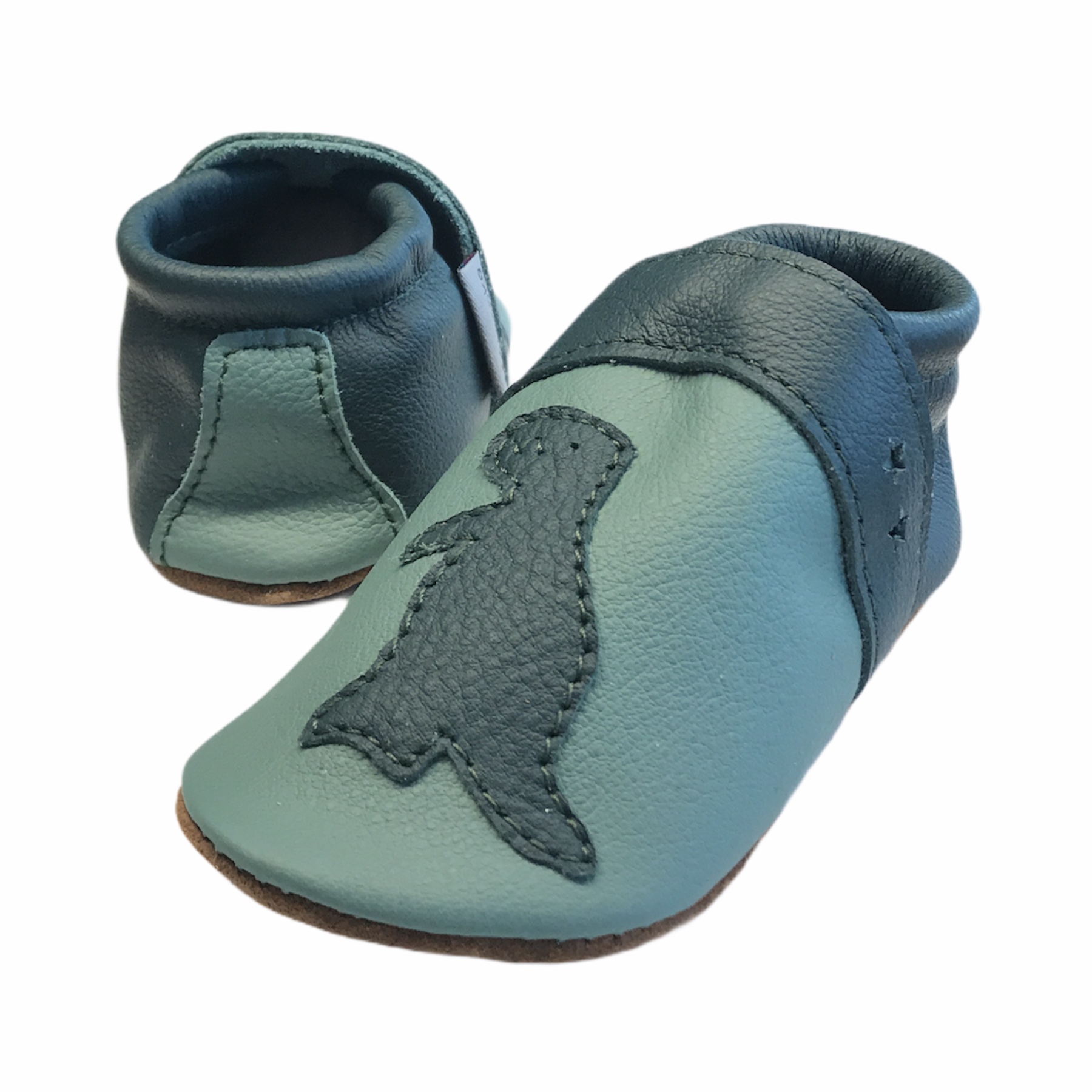 Krabbelschuhe – Dinosaurier Minze Petrol