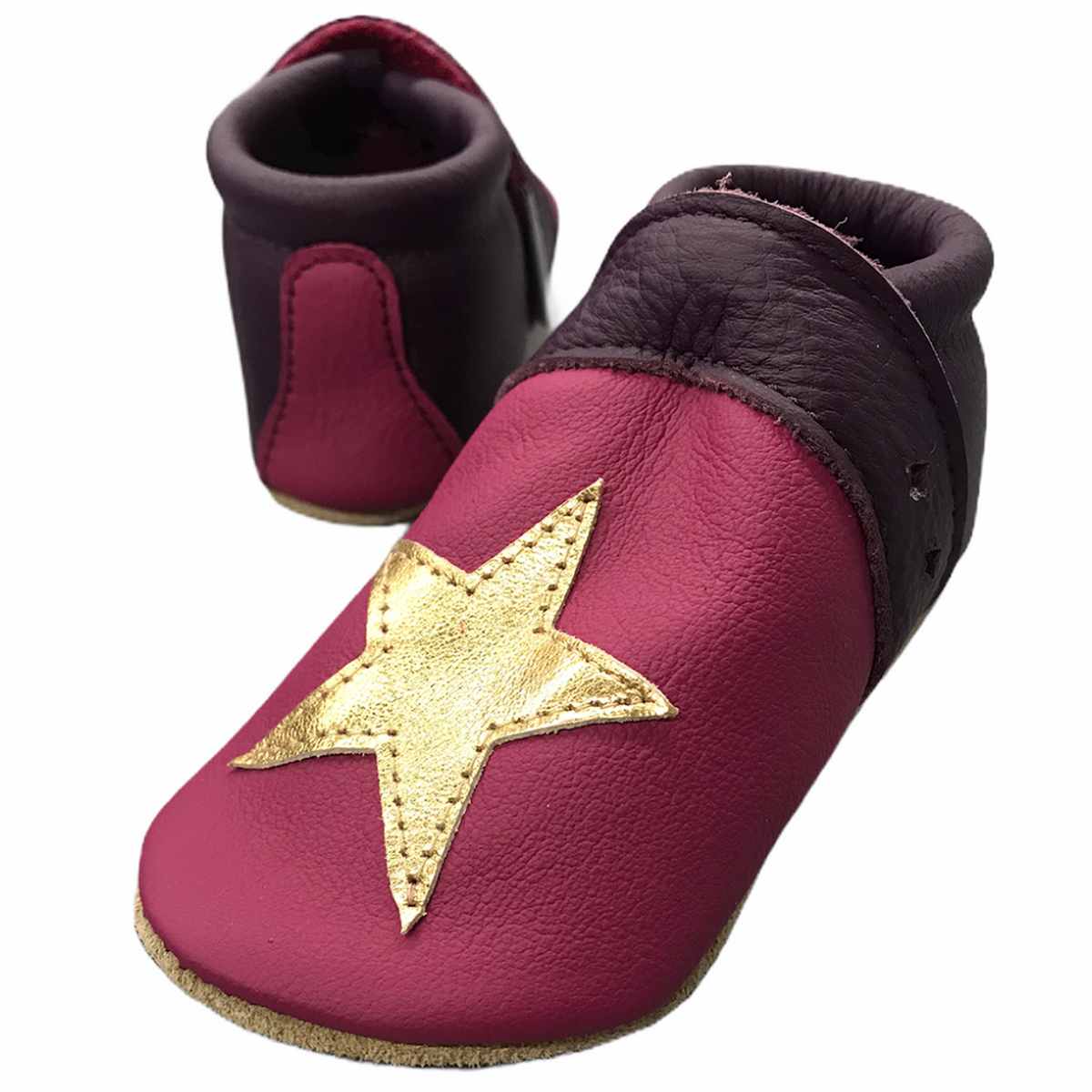 Krabbelschuhe – Stern Pink Violett Gold